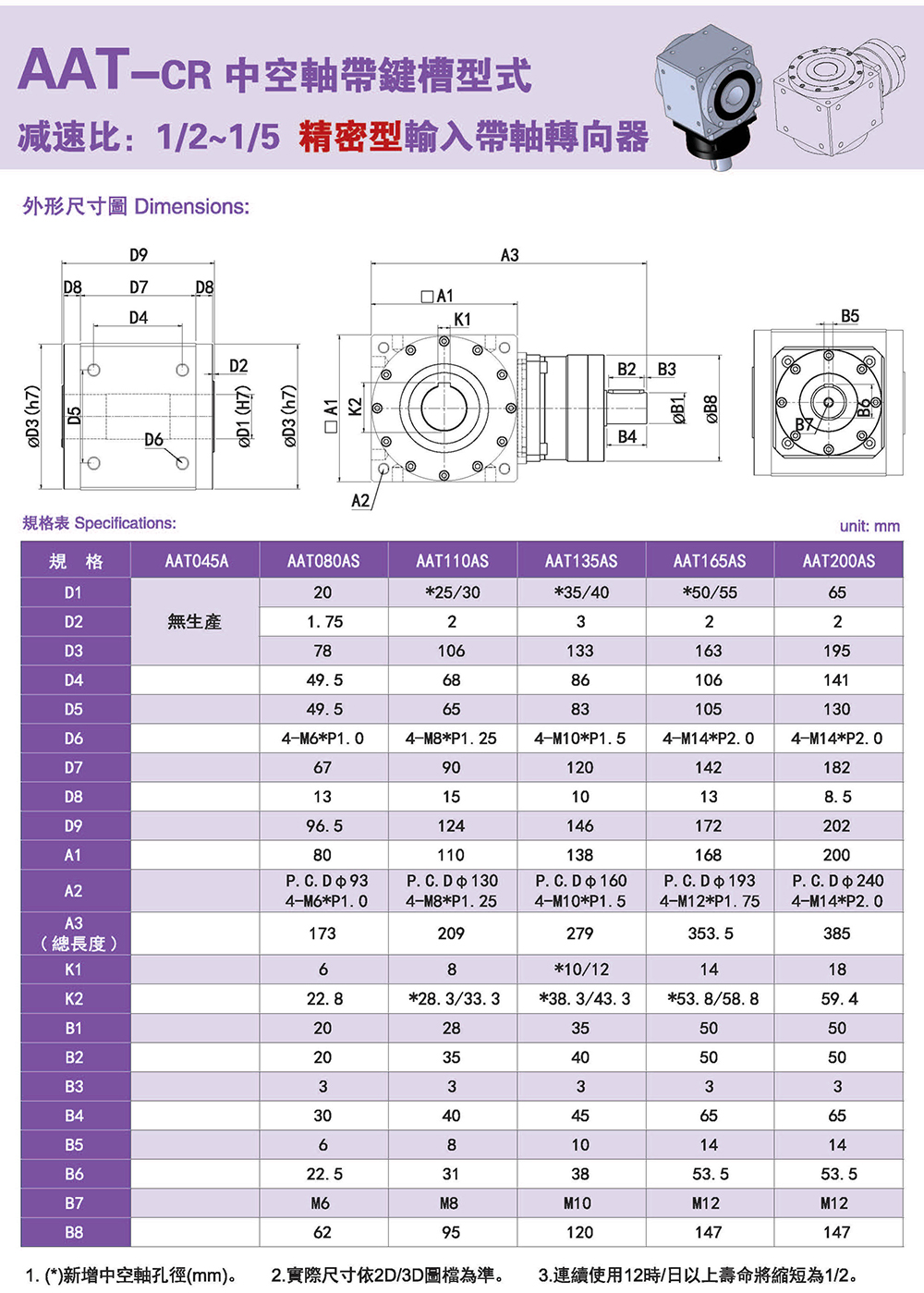 AAT-CR中空轴帶键槽型式 精密型输入带轴转向器