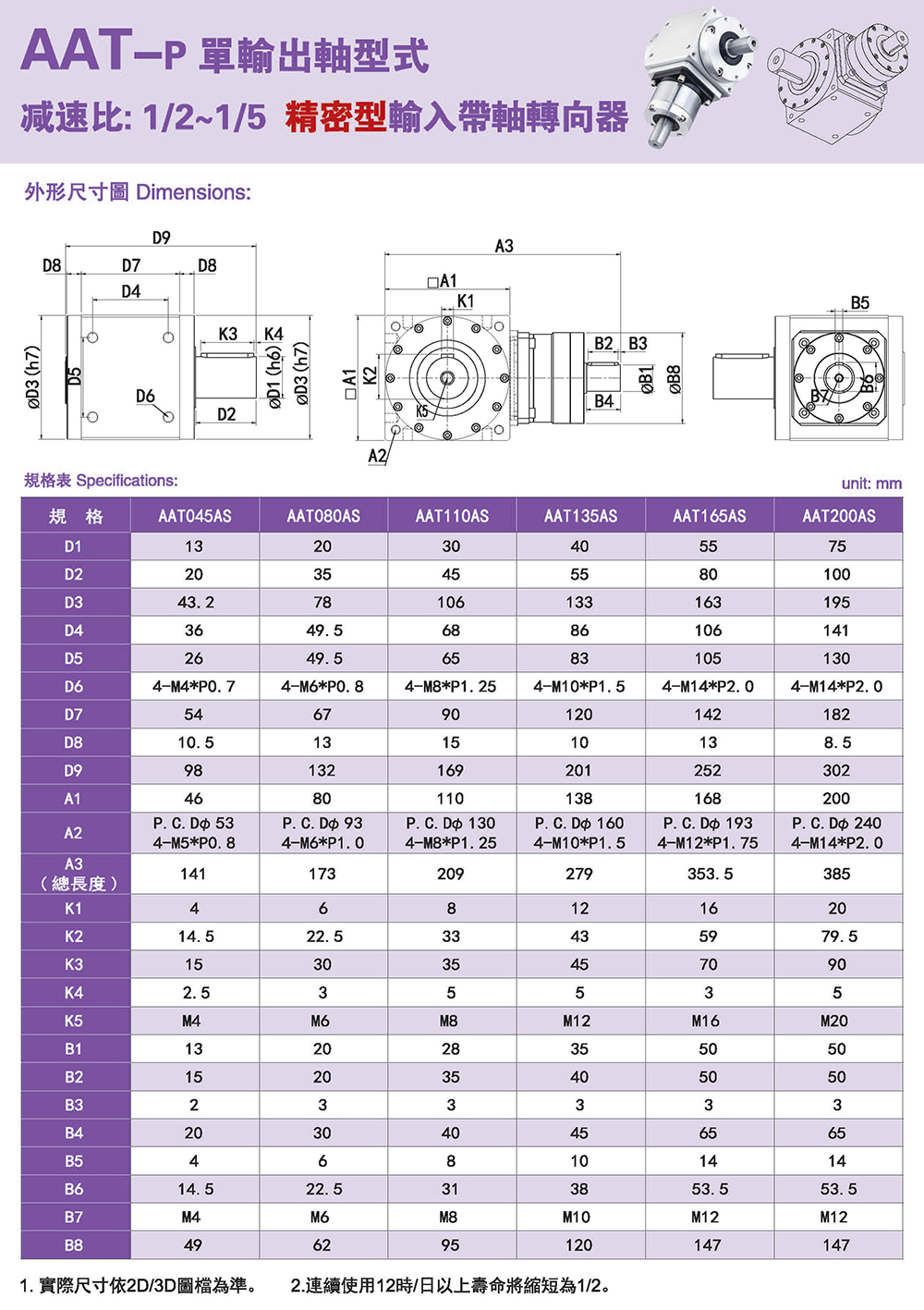 AAT-P单输出轴型式 精密型输入带轴转向器
