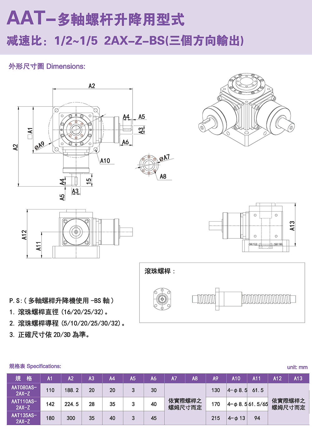 多样化:输出轴种类多样化,有单出力轴型、双出力轴型、中空轴型、中空法兰型、中空轴锥形紧迫性、螺杆直线型、螺牙直线型。