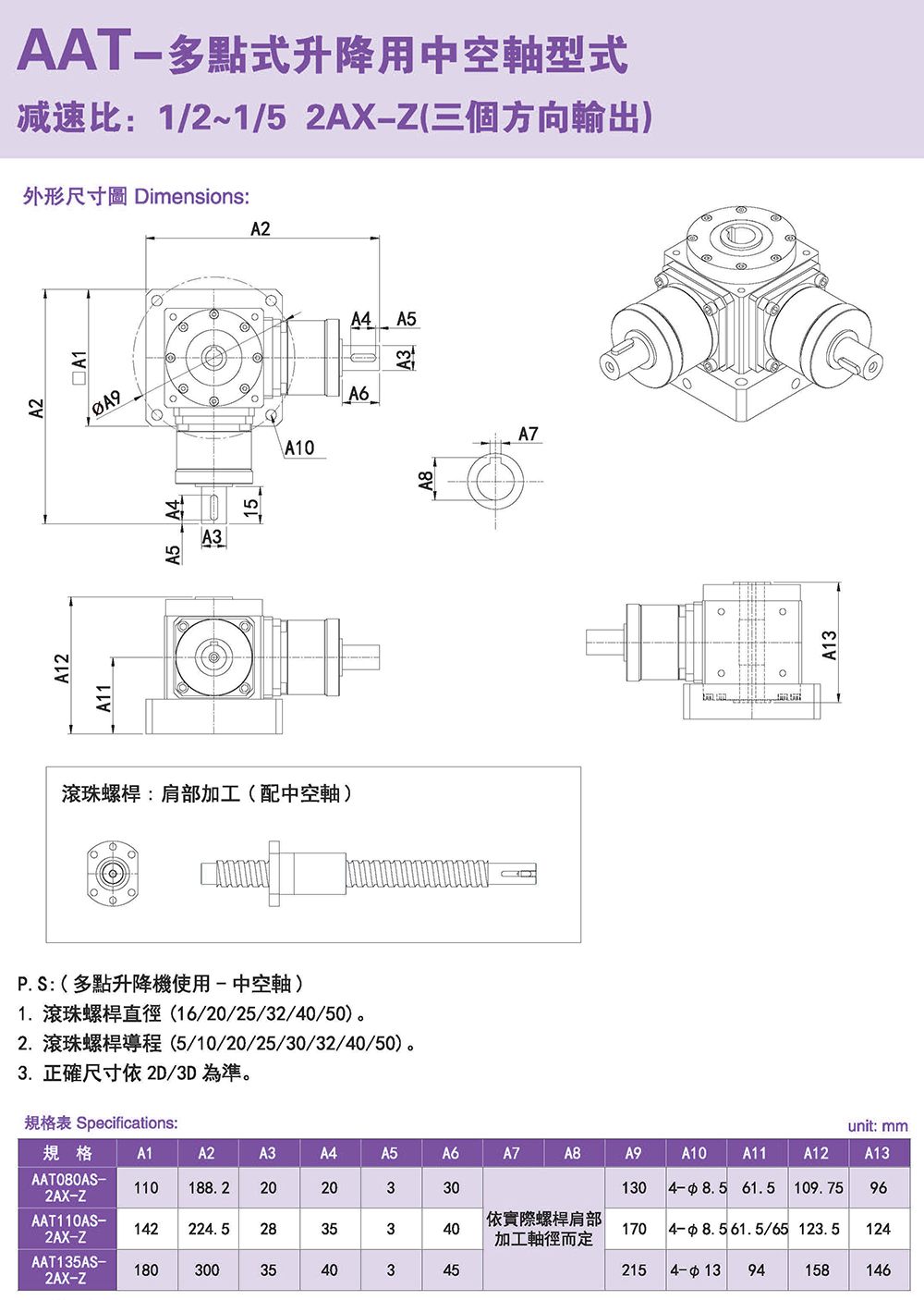 多样化:输出轴种类多样化,有单出力轴型、双出力轴型、中空轴型、中空法兰型、中空轴锥形紧迫性、螺杆直线型、螺牙直线型。