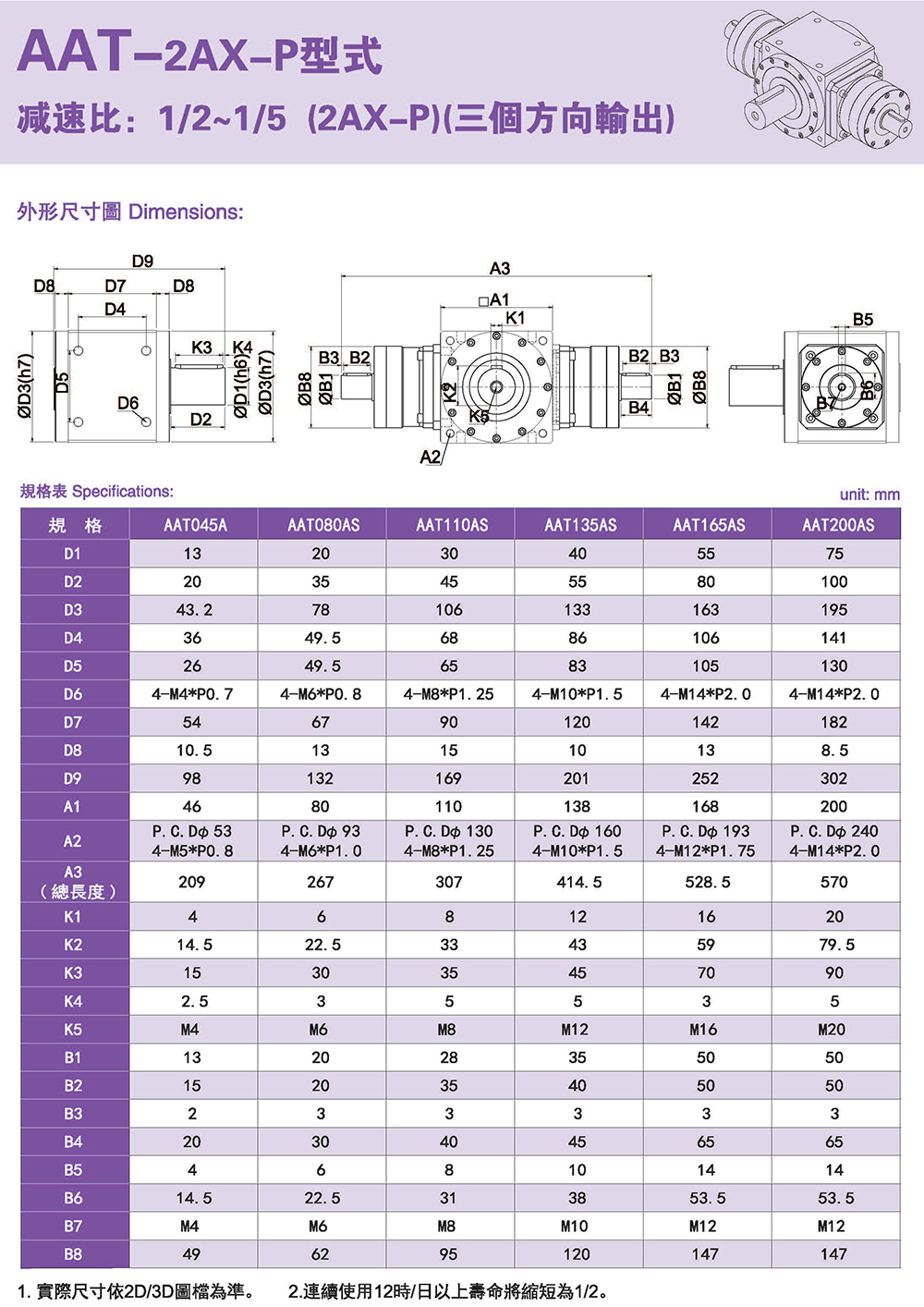 多样化:输出轴种类多样化,有单出力轴型、双出力轴型、中空轴型、中空法兰型、中空轴锥形紧迫性、螺杆直线型、螺牙直线型。