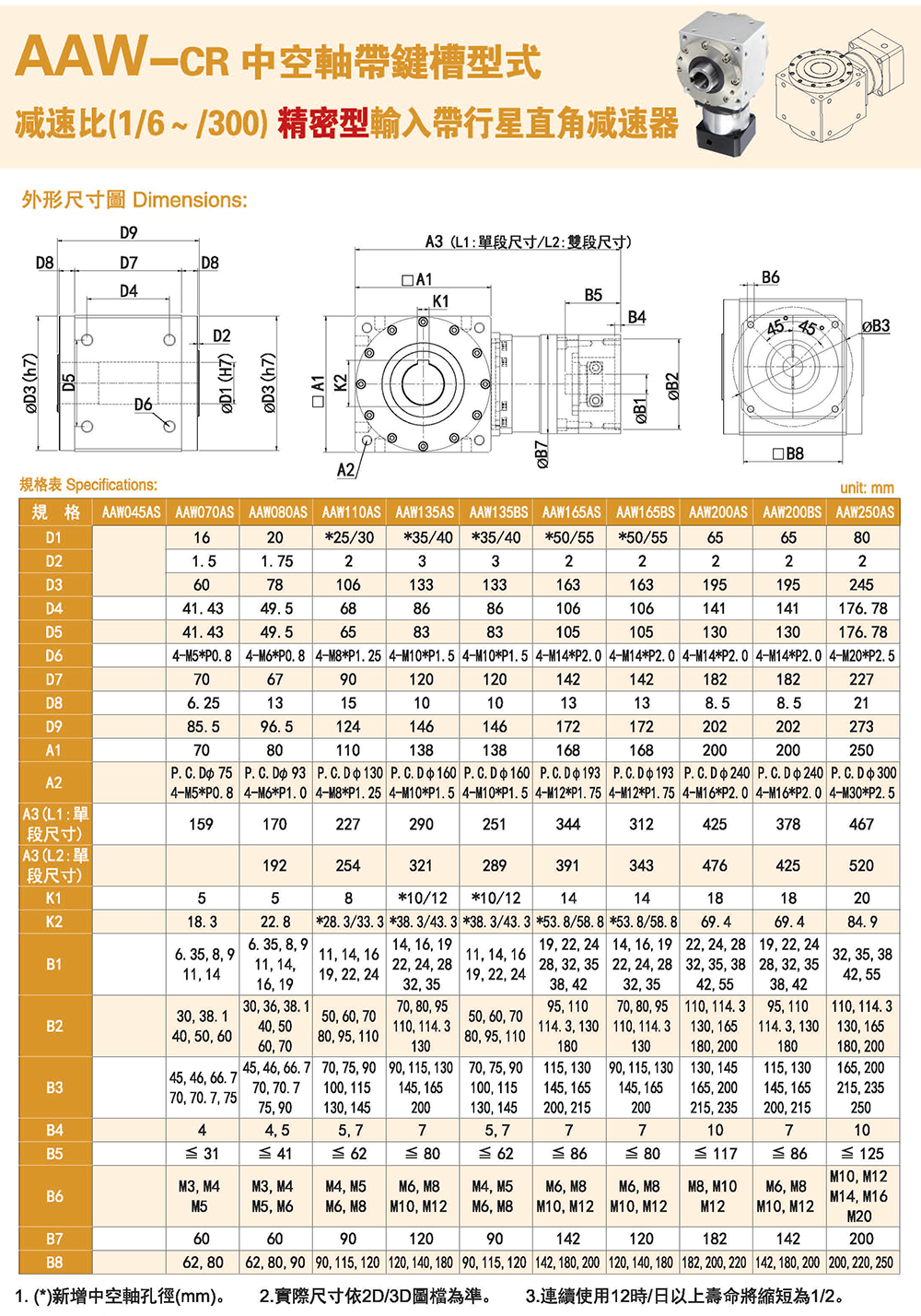 AAW-CR中空轴带键槽型式 精密输入带行星直角减速器