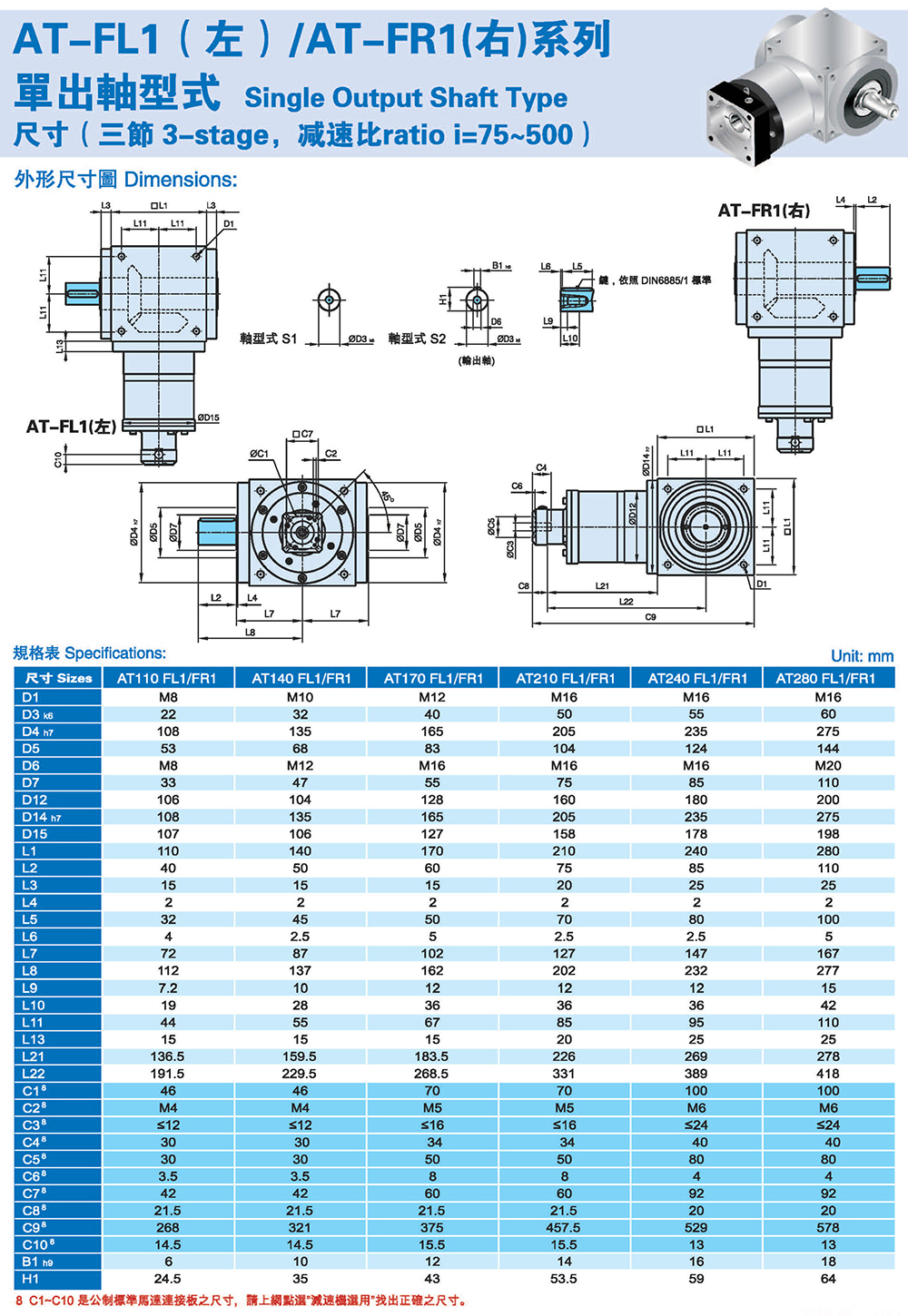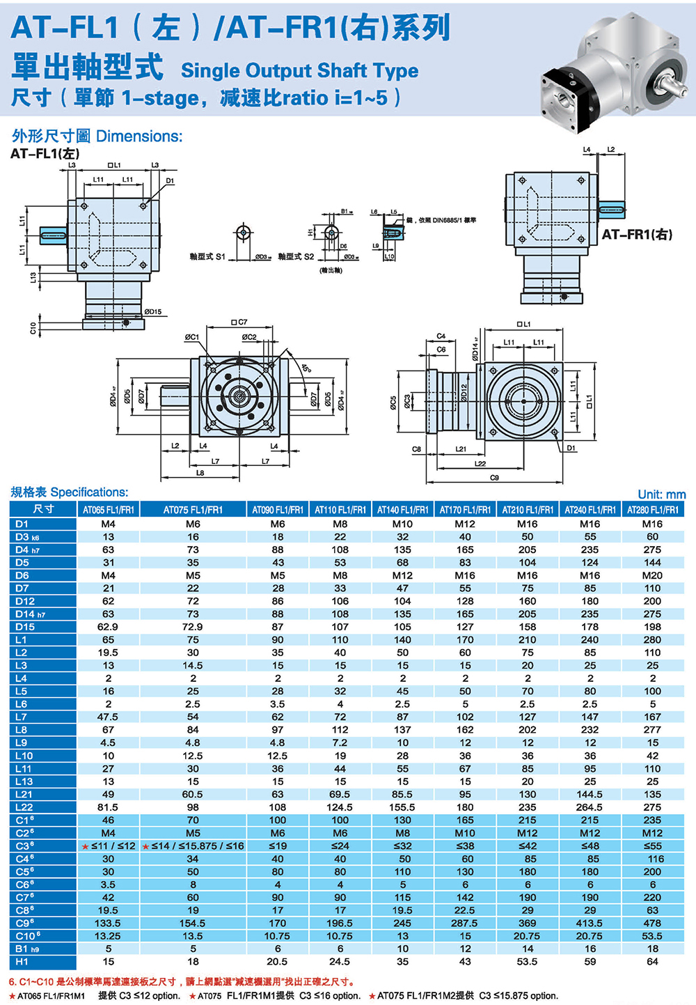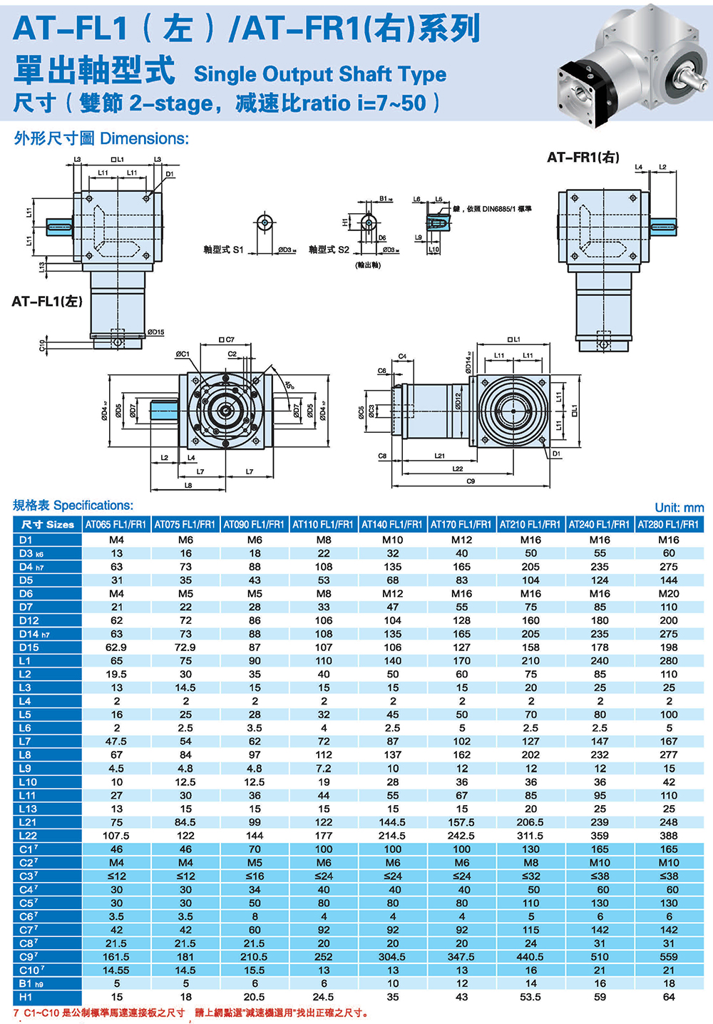 AT-FL1(左)/AT-FR1(右)系列 单出轴型式