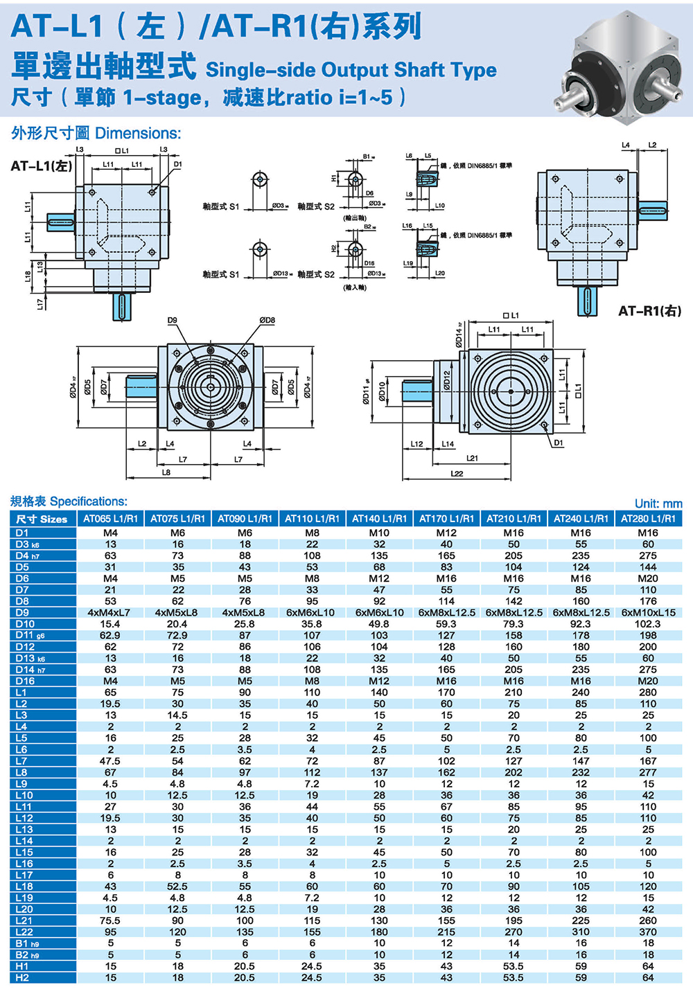 AT-L1(左)/AT-R1(右)系列 单边出轴型式