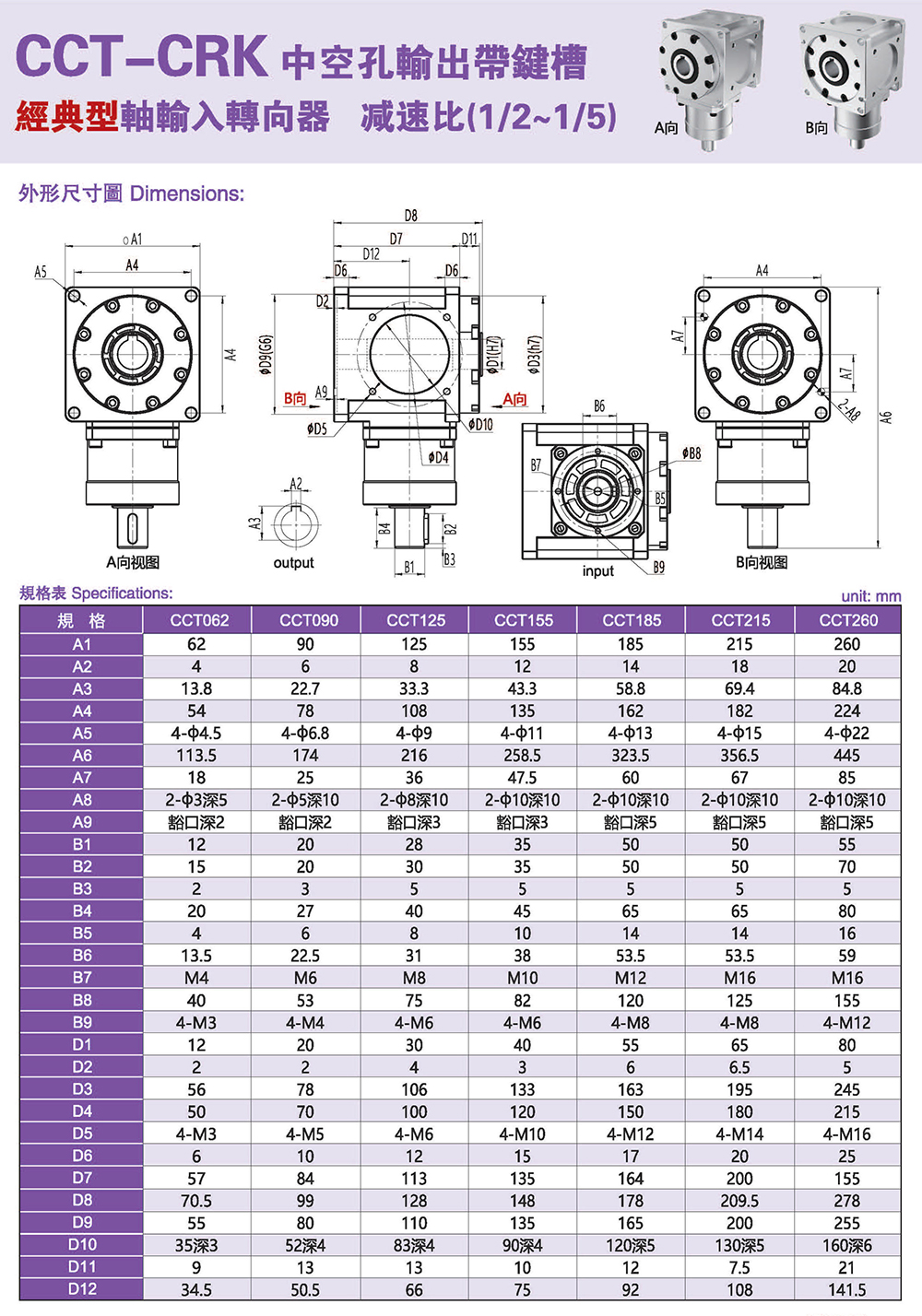 CCT-CRK中空孔输出带键槽 经典型轴输入转向器