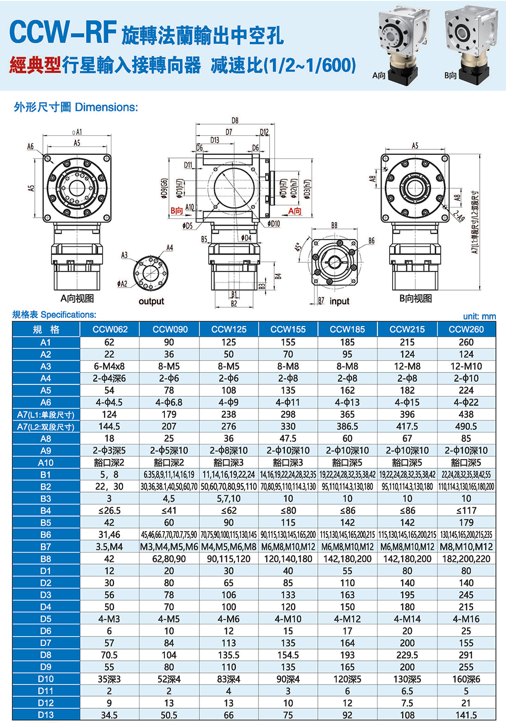 CCW-RF 旋转法兰输出中空孔 经典型行星输入接转向器