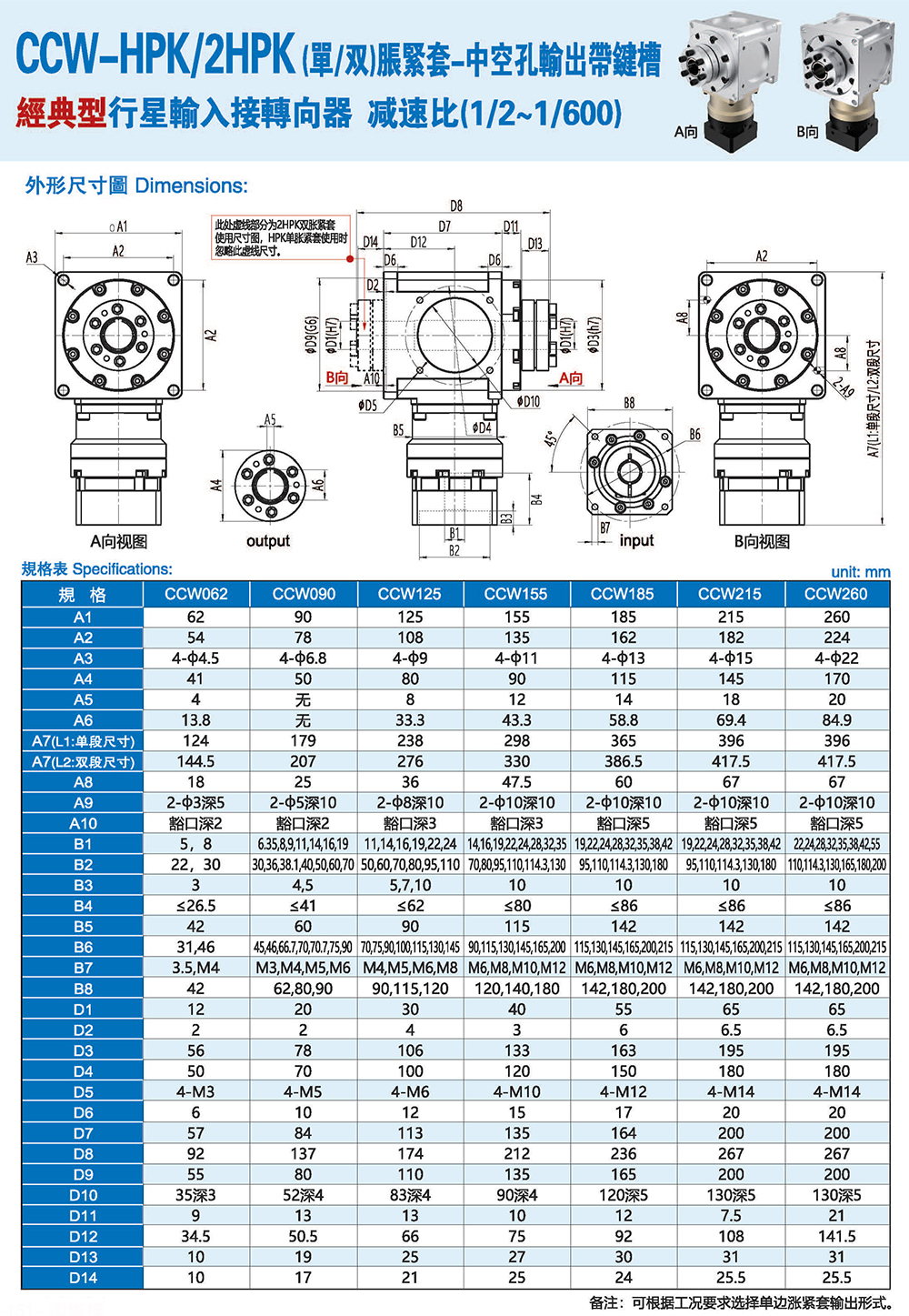CCW-HPK 单胀紧套-中空孔输出带键槽 经典型行星输入接转向器