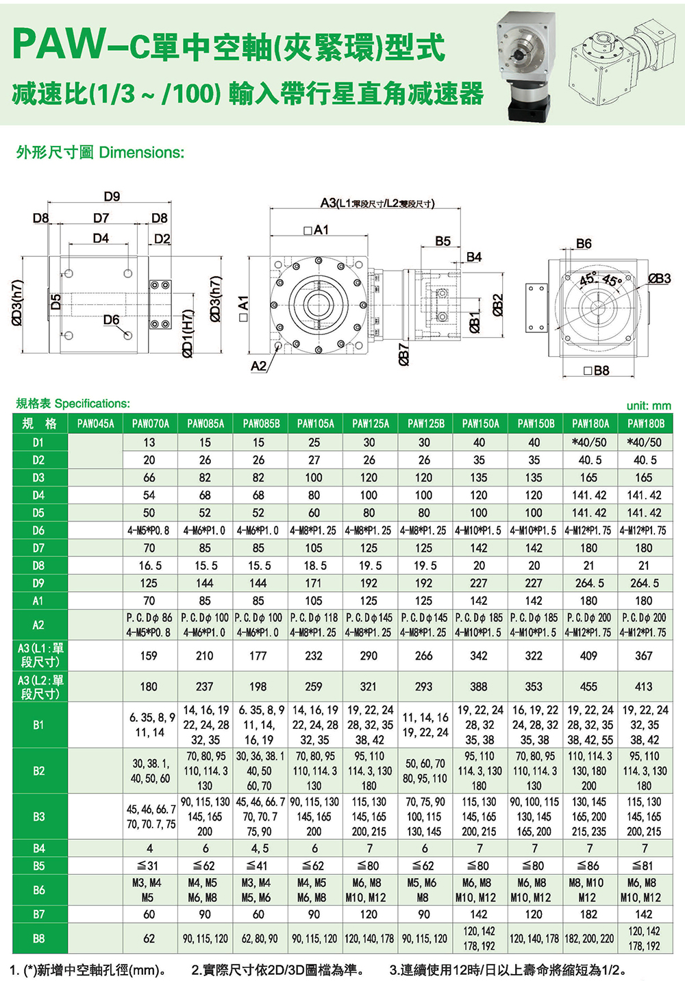PAW-C单中空轴(夹紧环)型式 输入带行星直角减速器