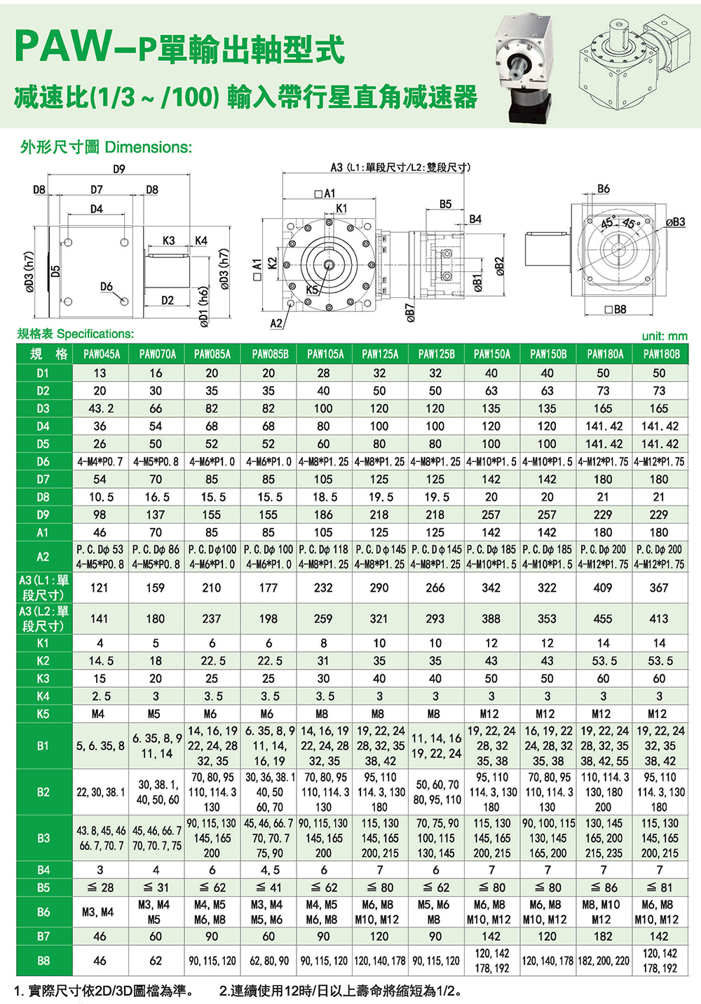 PAW-P单输出轴型式 输入带行星直角减速器