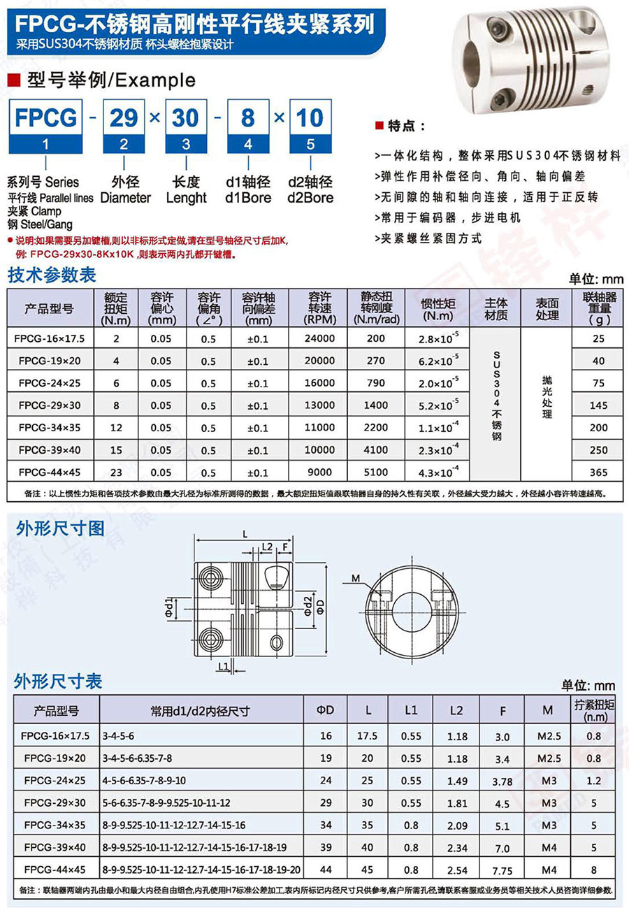 技术参数及标准尺寸: