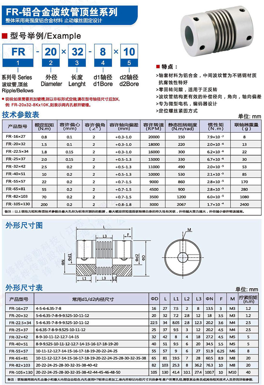 >轴套材料为铝合金,中间波纹管为不锈钢材质抗腐蚀性特好