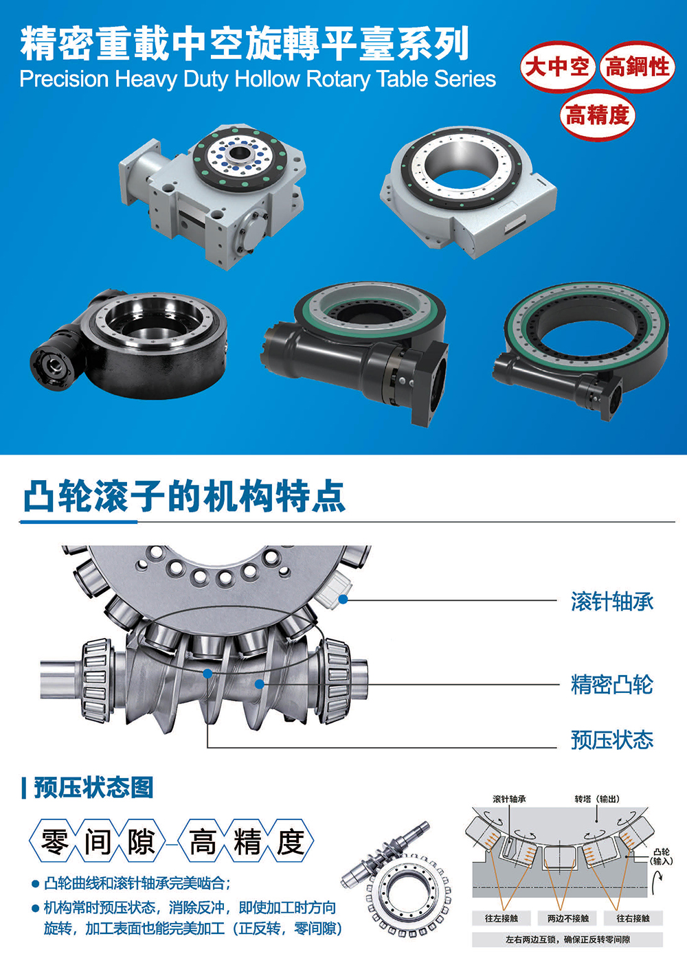 ●机构常时预压状态,消除反冲,即使加工时方向旋转,加工表面也能完美加工(正反转,零间隙)