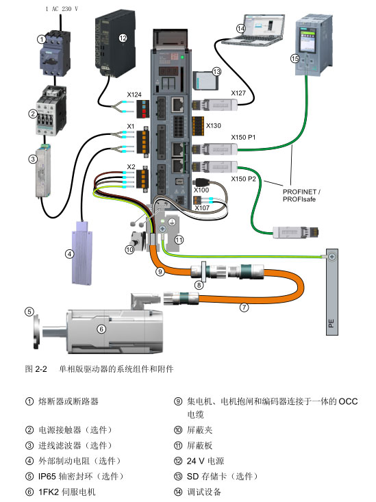 本驱动器系列和电机系列可协调工作,应配套使用,上位控制器为 PLC。驱动系统和控制 器之间通过 PROFINET 连接。 另外,西门子提供不同长度的预装配 MOTION-CONNECT 电缆,以方便电机和驱动器之间 的连接,保障可靠运行。