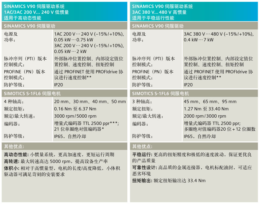 SINAMICS V90 根据不同的应用分为两个版本: