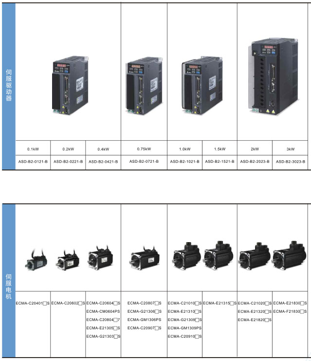 台达伺服电机ASDA-B2系列伺服型号: