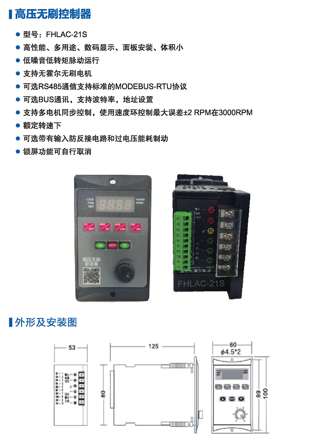 可选带有输入防反接电路和过电压能耗制动锁屏功能可自行取消。