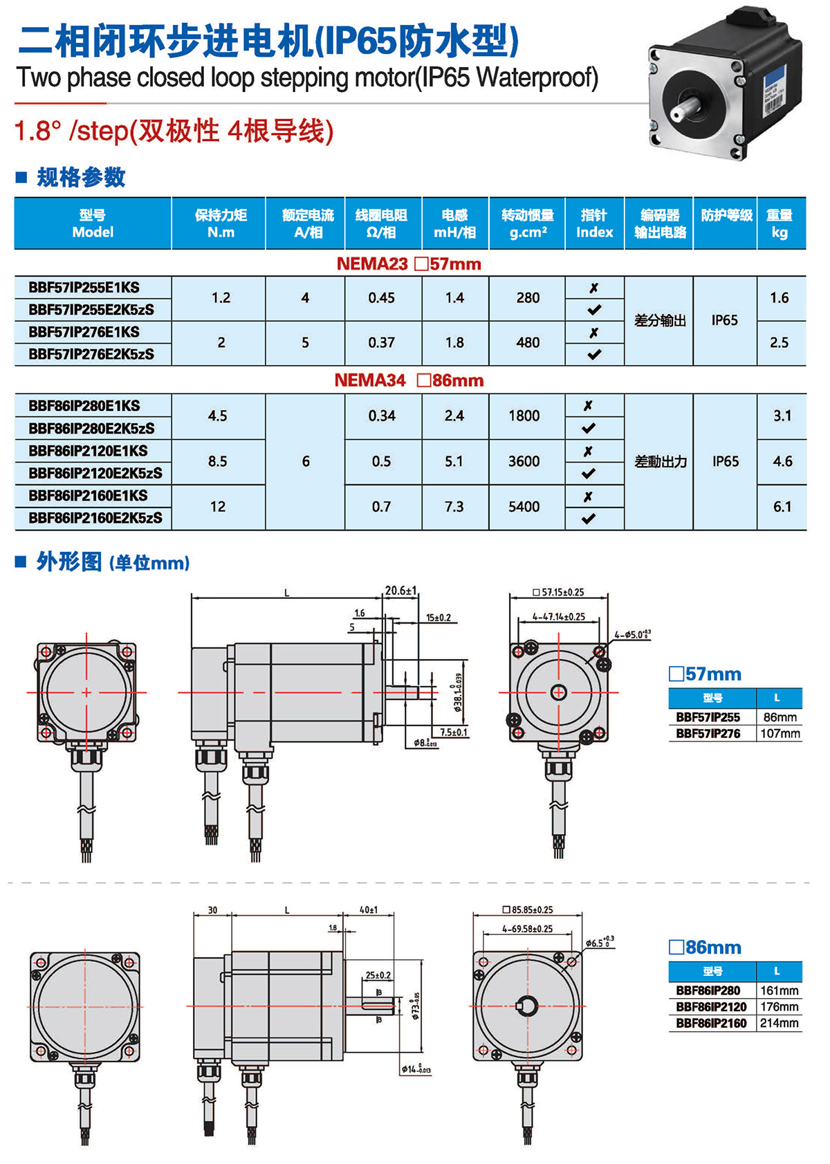 二相闭环步进电机(IP65防水型)
