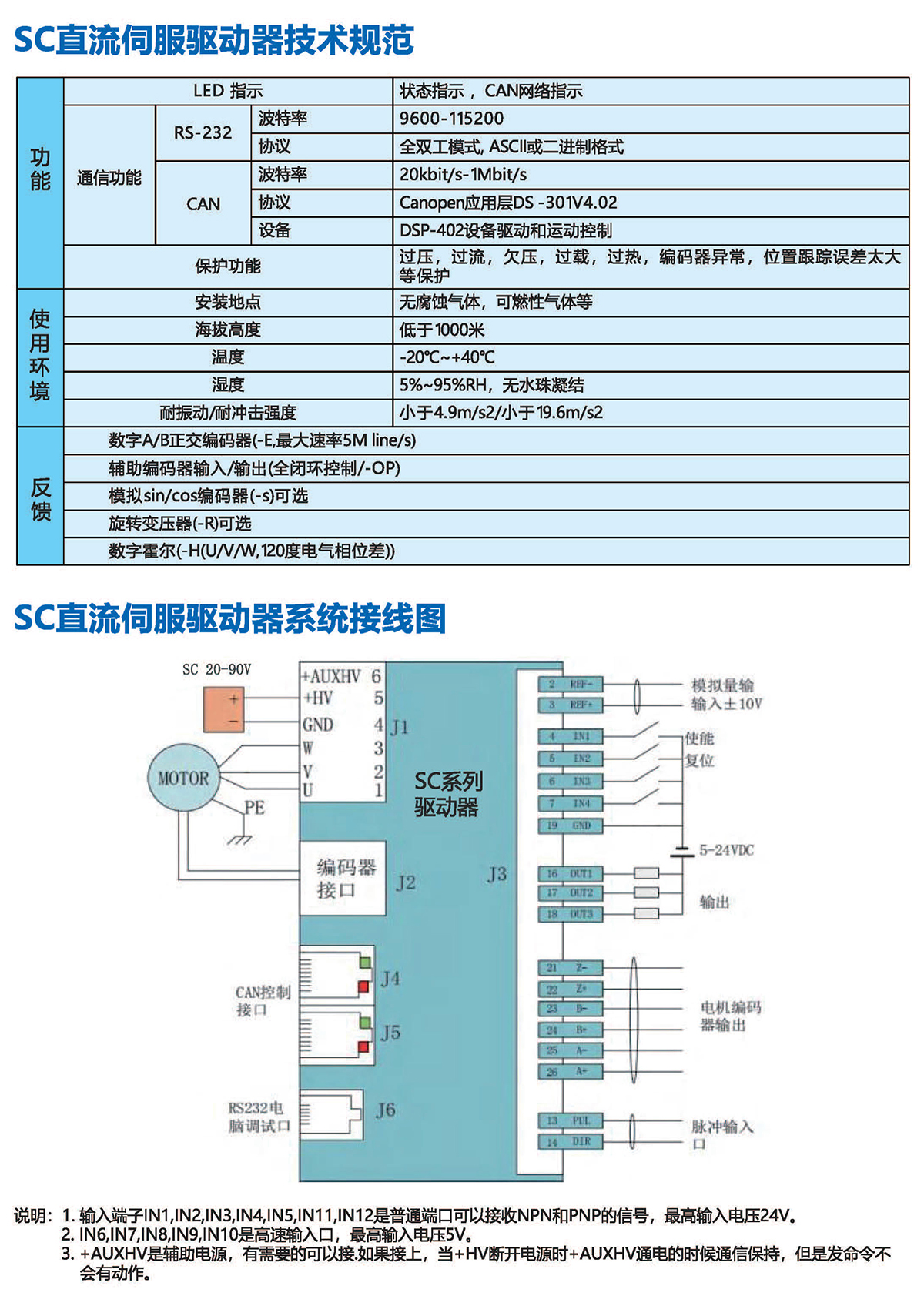 ◆CAN2.0局域总线,兼容CANopen DS 402 ,波特率高1MHz ;
