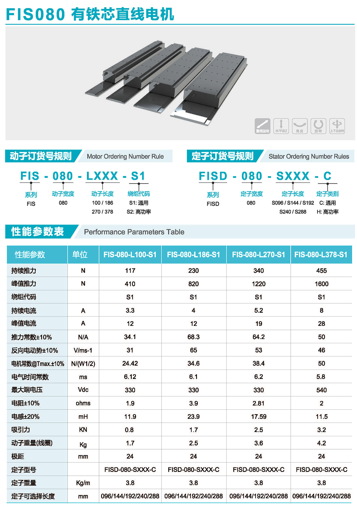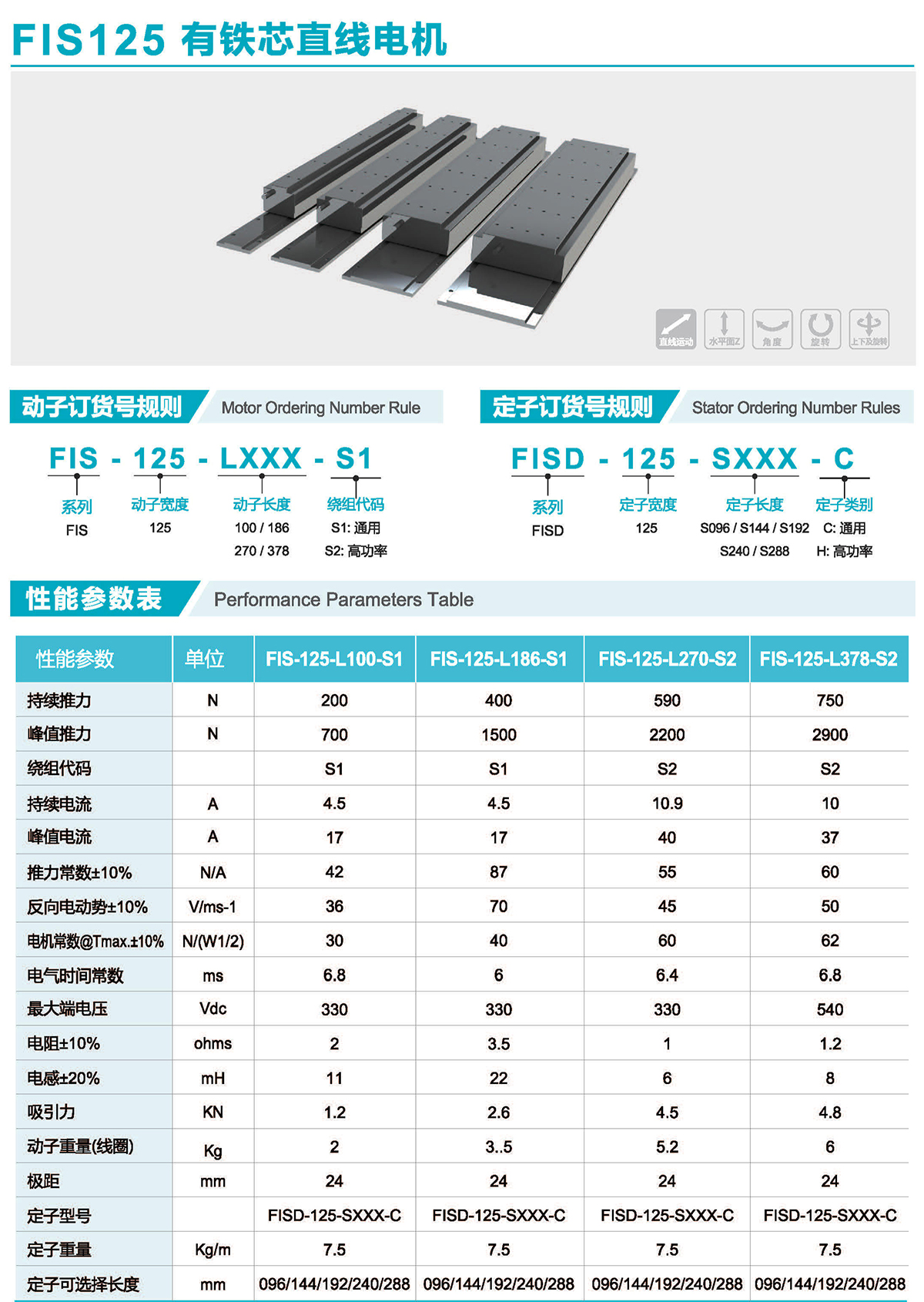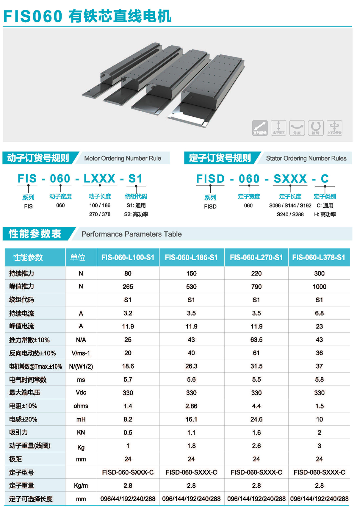 FIS系列有铁芯电机提供了单位体积最大出力,采用了极佳的抗齿槽效应的解决方案,最大限度的降低齿槽效应,他们外形尺寸小,吸力低,推力高,广泛应用于高精度高速度智能装备领域。